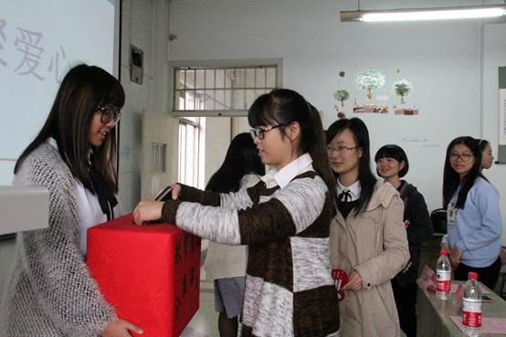在仪式开始前,在场每个人都拿到了一张爱心卡片,这张卡片作为教育星空公益基金的门票,表达本基金“以精神上的陪伴代替单纯的物质资助“这一特色,引导大家写下自己希望奉献的爱心投入捐赠箱中,公益基金管理人员也会将这些资料记入档案,为有需要的人送去帮助。装满爱心的捐赠箱由狄伟锋副书记交给阳光爱心义工协会徐美儿会长,完成了一场动人的爱心接力。
