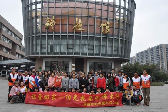 在永康市阳光爱心义工协会和我院实践队的联系和组织下,参加我院实践队今年暑期举办的“向阳夏令营”的孩子们在10月31日上午来到了浙师大,进行“向阳花朵师大行”活动,和曾经共同学习生活的老师在浙师大的校园里重聚。
