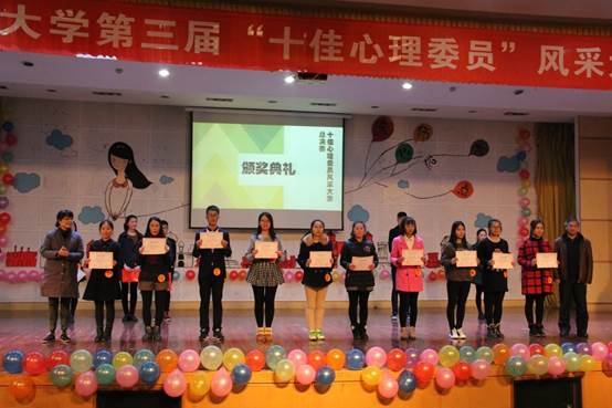 最终,徐杭椰、张芹玉等10名心理委员脱颖而出,荣获“校十佳心理委员”称号,张雅迪、黄思睿等人荣获优胜奖,并由现场老师为获奖选手颁奖。