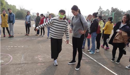 “你是我的眼”也是炙手可热的项目之一。参赛者需两两搭档,分别扮演指引者和盲人,由指引者在活动线外用口头语言指引“盲人”安全绕过区域内的障碍物。若碰到障碍物必须要完成障碍物上指定的动作,才能继续前进,这非常考验团队智慧和协作精神的项目。比赛中,常有人不小心踏入“陷阱”,不得不表演节目,或诗朗诵或模仿动物或原地转圈,其窘况逗笑了围观的同学。不过,有的团队凭借超强的观察力和发达的运动神经,采用跳远的战术,两三步就从入口跳到了出口,让人不得不为他们的机智点赞。