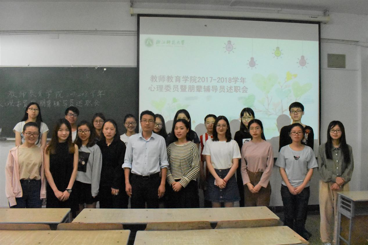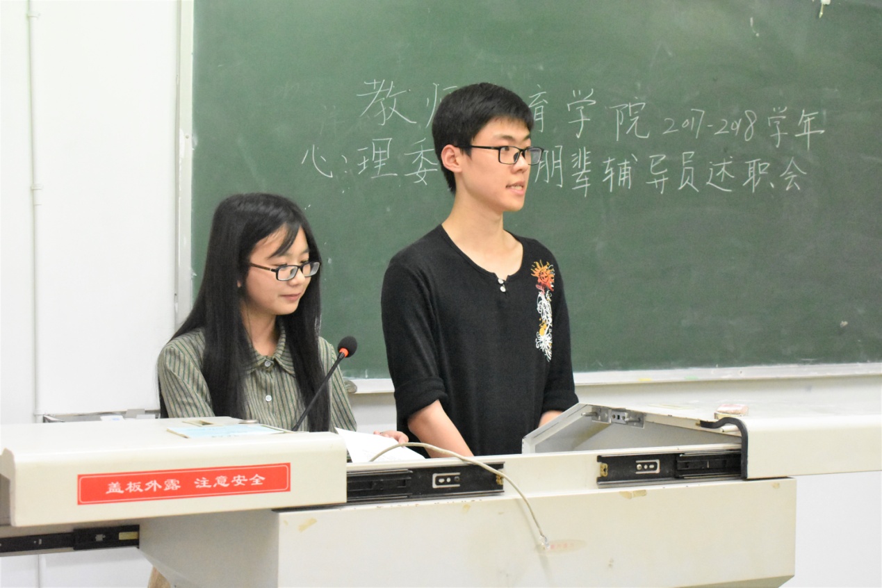 为进一步激发各心理委员和朋辈辅导员的工作热情,促进学院心理工作开展,5月5日晚,教师教育学院2017-2018学年心理委员暨朋辈辅导员述职评比大会于16幢501教室举行。