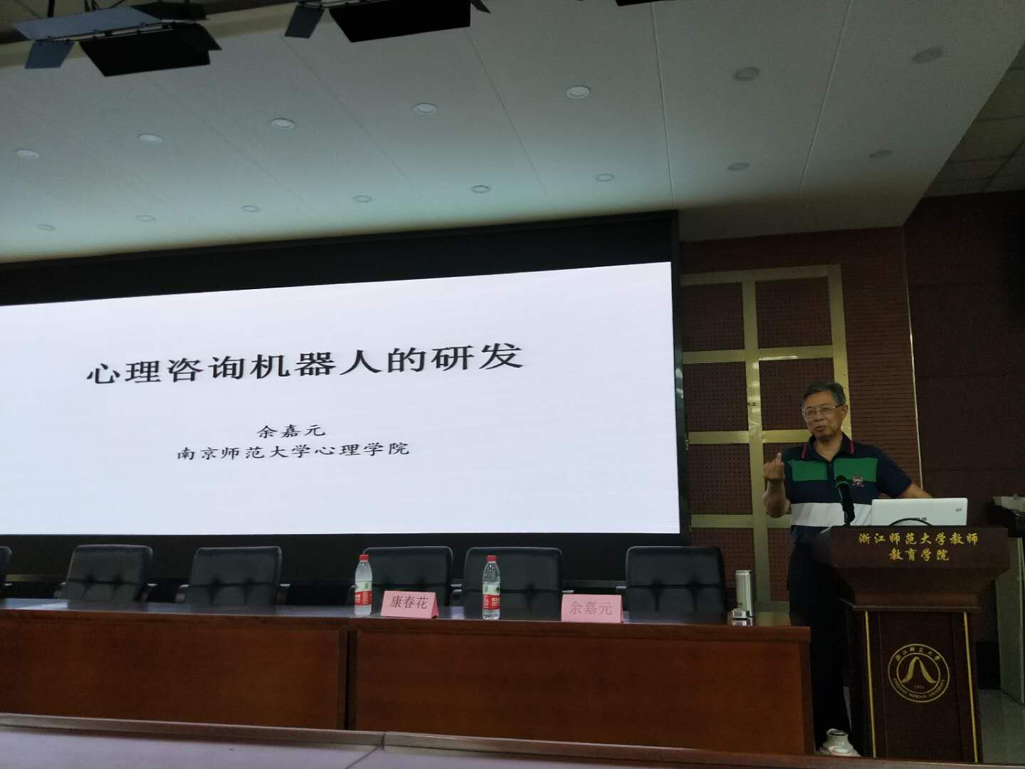 2018年5月16日,余嘉元教授在17幢112报告厅进行主题为“心理咨询机器人的研发”的学术报告。余先生以“测试身边人是否是机器人”这一幽默的方式引出本次报告的中心─“机器人的研发”,讲述了机器人在国内外的相关研发,介绍了机器人研发的主要环节和相关理论。用通俗易懂的语言重点讲解了机器学习算法,让大家对机器人研发的整个过程有了清晰的了解,也使大家生产了浓厚的兴趣。讲座结束后,大家意犹未尽,与余先生就心理咨询机器人的研发进行了进一步的交流互动。本次报告由我系康春花副教授主持,我系部分教师、研究生及本科生参加了活动。