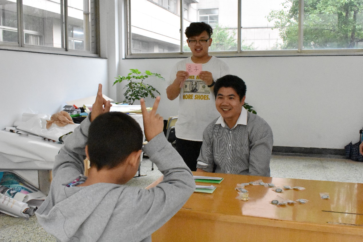 与此同时,会场另一边的“你划我猜”游戏也正如火如荼地进行着。家长与孩子一方用身体进行比划,再由另一方据此猜测对应的词语。生动形象的动作和机智快速的回答,都充分体现亲子间无须言语表现的天然默契。
