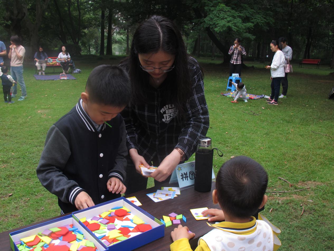 此外,孩子们个个化身“拼图小天才”,开动脑筋、不断尝试,用简单色块拼出了各种图案;“小猫钓鱼”则是一场眼力和手速的挑战,孩子们都眼疾手快、收获颇丰;而在“齐心协力”中,家长和孩子用身体运送气球,配合前进,气球运送的同时也是孩子们不断成长、学会团结的过程……