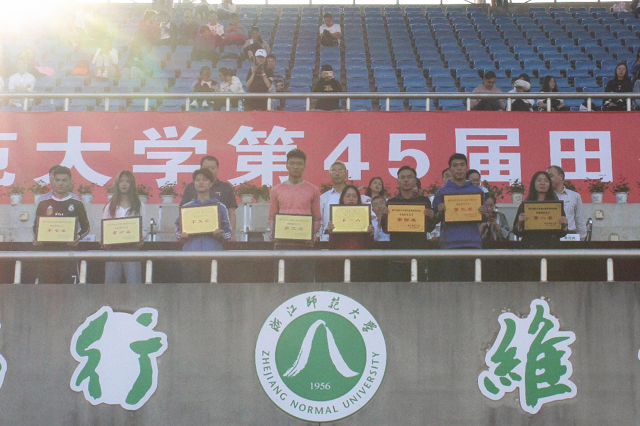 10月19日下午,浙江师范大学第四十五届校田径运动会闭幕式在新田径场隆重举行,至此,本届运动会正式落下帷幕。教师教育学院以甲组团体总分第一名的成绩续写教育辉煌。此外,小教192班的陈坤与小教172班的陈也凭借其个人的优异表现荣获了“优秀运动员”称号。