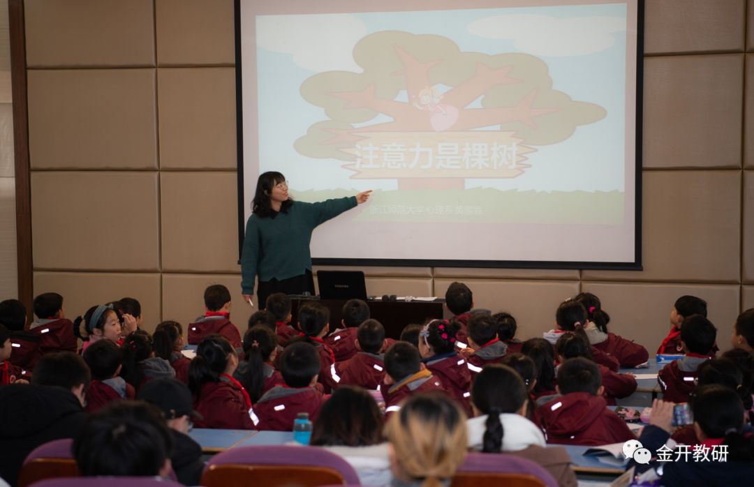 浙师大心理系16级本科生黄露霖和东苑小学张莉分别执教二年级心理课《注意力是颗树》、六年级心理课《不完美给我力量》。两节课既精彩又接地气,教学目标明确扎实、活动开展注重实效。