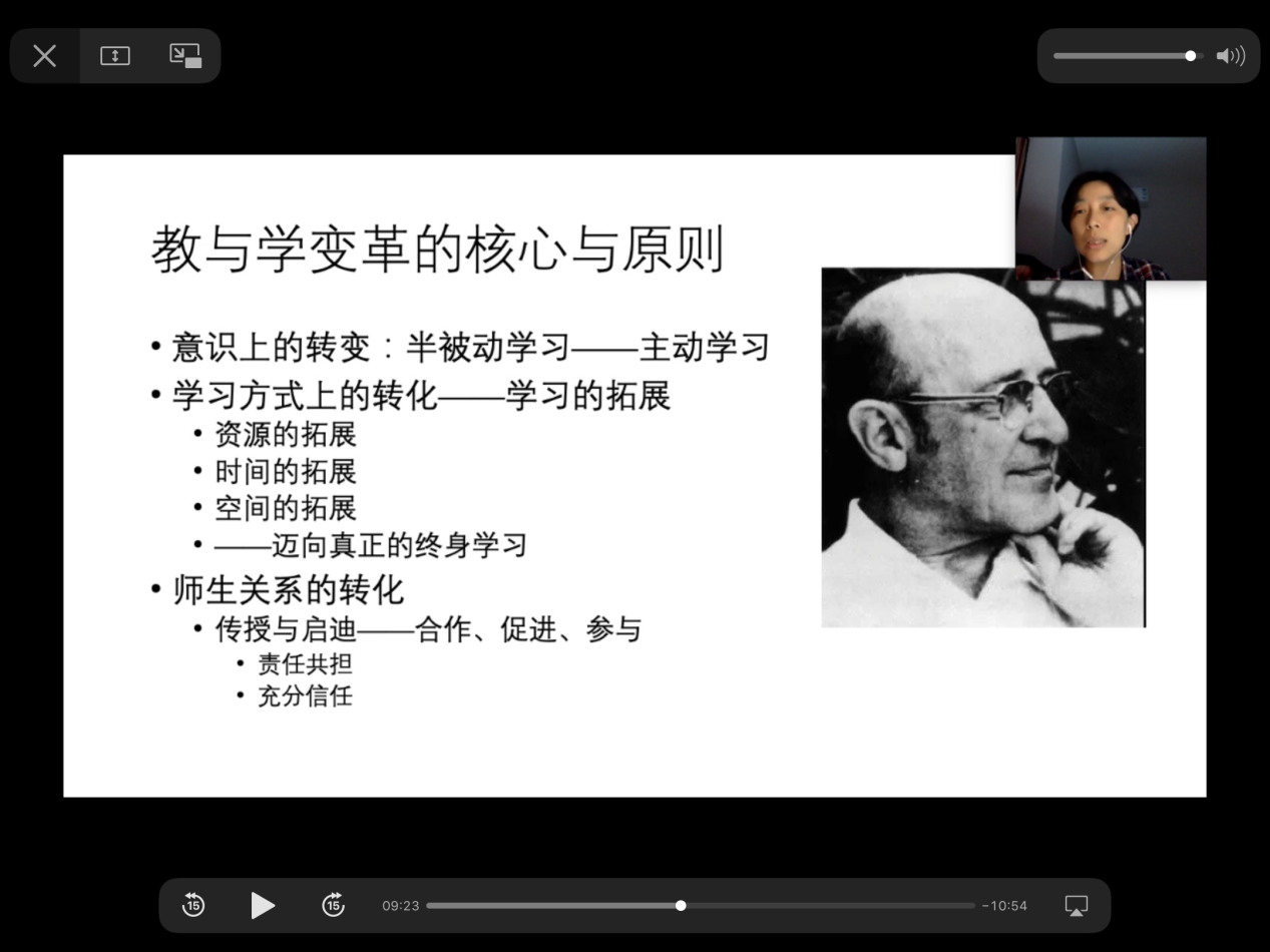 首先是心理系宋晓兰老师介绍了认知心理学线上线下混合的教学安排。宋老师认为,看上去是迫不得已的线上教学却蕴藏着极好的机遇,深化了这门课程的教学改革,真正实现了“让主动学习发生”这个她多年尝试探索的目标。作为一门理论性较强的学科,专业知识薄弱的大二学生对其认识理解有一定的困难。线上教学促使学生做到了意识上的转变,从半被动学习转变为主动学习,学习内容分为线上线下两部分,线下先要求学生观看微课视频,进行拓展阅读,整理学习笔记,梳理知识点,所有知识都由学生本人先自学和思考;再转到线上进行交流互动,采取小组讨论、大组汇总的形式,加深对知识体系的探究与深入理解。同学们反馈虽然需要花的时间和精力很多,但对这门课程有了系统和深入的掌握。