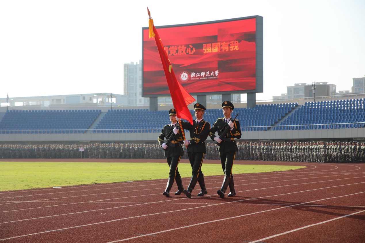 9月26日,浙江师范大学2021级新生军训汇报演出在东田体育场隆重举行。沙场秋点兵,威武展英姿,在为期两周的军训中,教师教育学院的学子们表现出色,在军训汇演中荣获“内务优秀奖”“先进单位”“优秀方阵”三面锦旗,为本次军训画上了一个圆满的句号。
