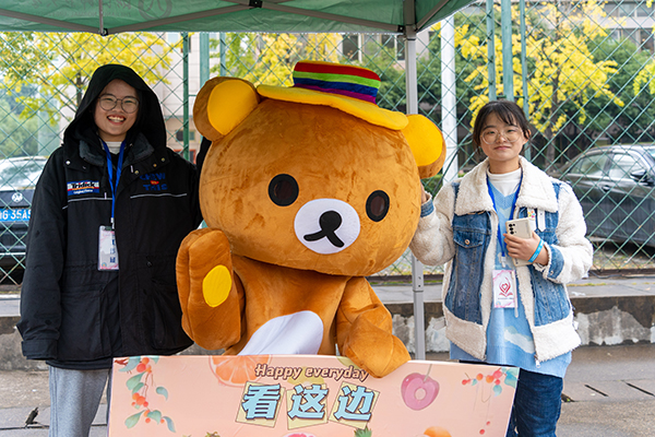 作为每年游园会的常驻嘉宾,乐乐熊依旧吸引了不少人的眼球。参与者通过完成绕口令和“看这边”游戏,即可获得小零食奖励。可爱的外表有趣的灵魂,乐乐熊的出现为游园会增添了更多乐趣与活力。