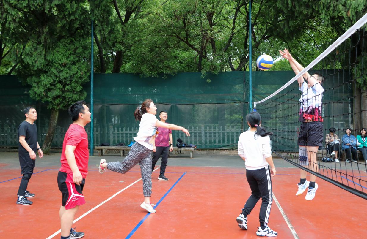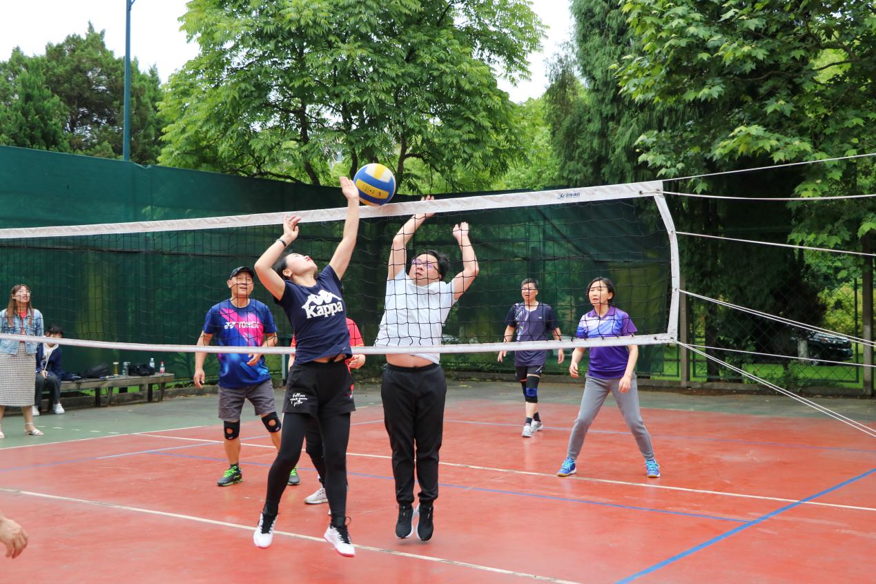 气氛愈发热火朝天,在稍作休息后,第二局在大家的掌声中拉开帷幕。教育学院其中一队老师势如破竹,靠着不俗的技巧、完美的配合,较快地占据上风,以21比13取得胜利。在另一边,地理与环境科学院的老师及时调整了状态和策略——果断的拦网、有针对性的防守,逆风翻盘让教育学院以三分的差距惜败。