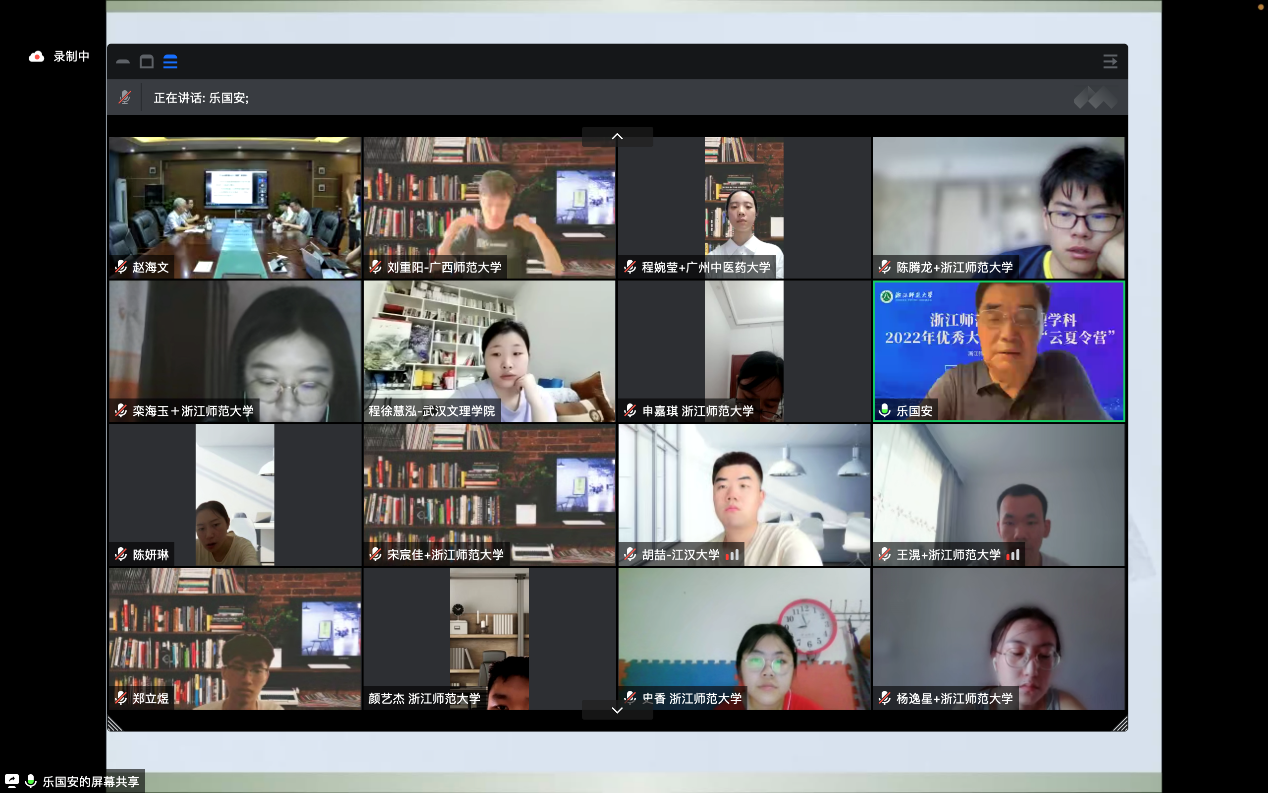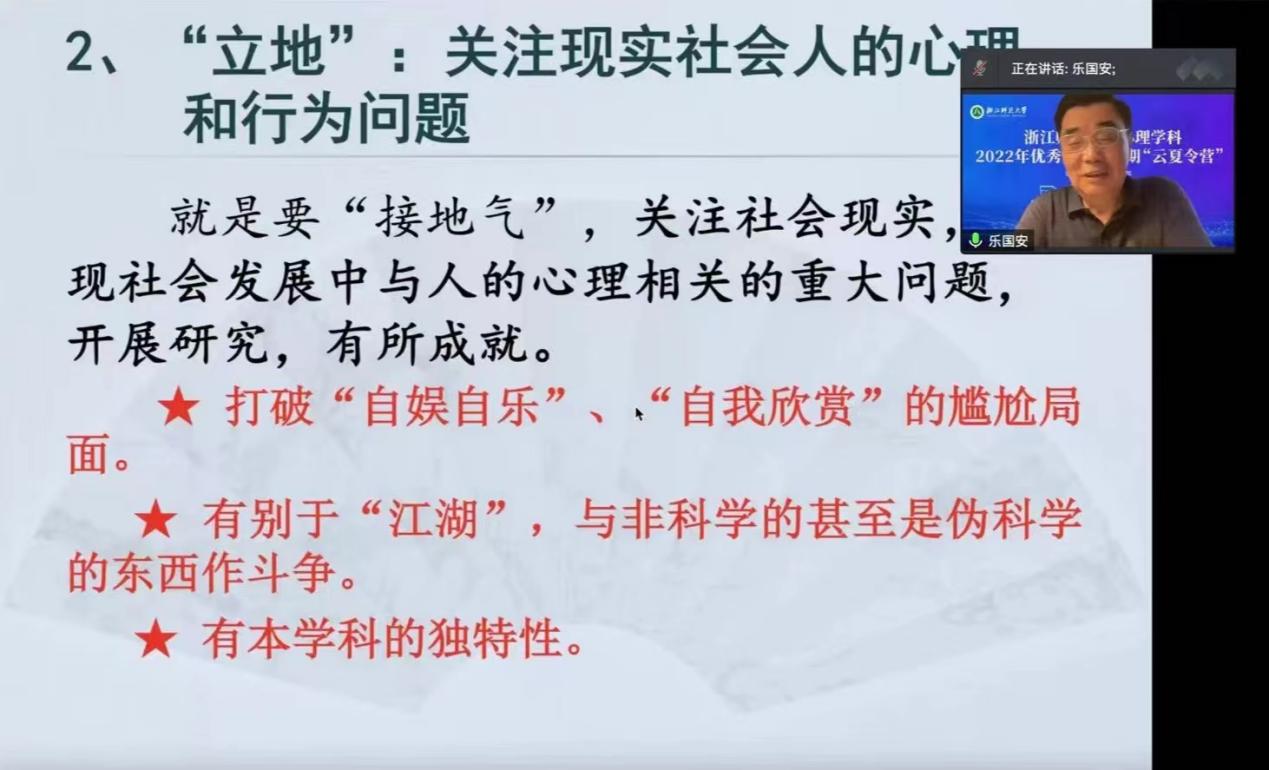为促进全国心理学专业优秀大学生的交流互动学习,浙江师范大学心理学科于2022年7月10日至12日开展了全国优秀大学生“云夏令营”活动,共吸引了来自80多所高校100多名大学生报名入营。浙江师范大学副校长李伟健、心理学科骨干教师出席开营仪式。心理学学位点副主任汪俊教授主持开营仪式。