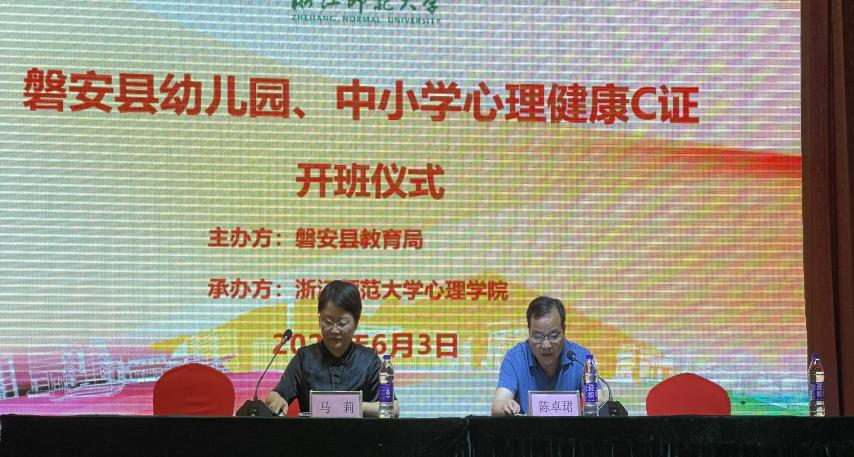 6月3日上午,磐安县教育局、永利23411集团联合举办的磐安县心理健康认证培训开班,磐安县幼儿园、中小学教师330余人参训。磐安县教育局副局长陈卓珺、学院党委书记马莉出席开班仪式并致辞。