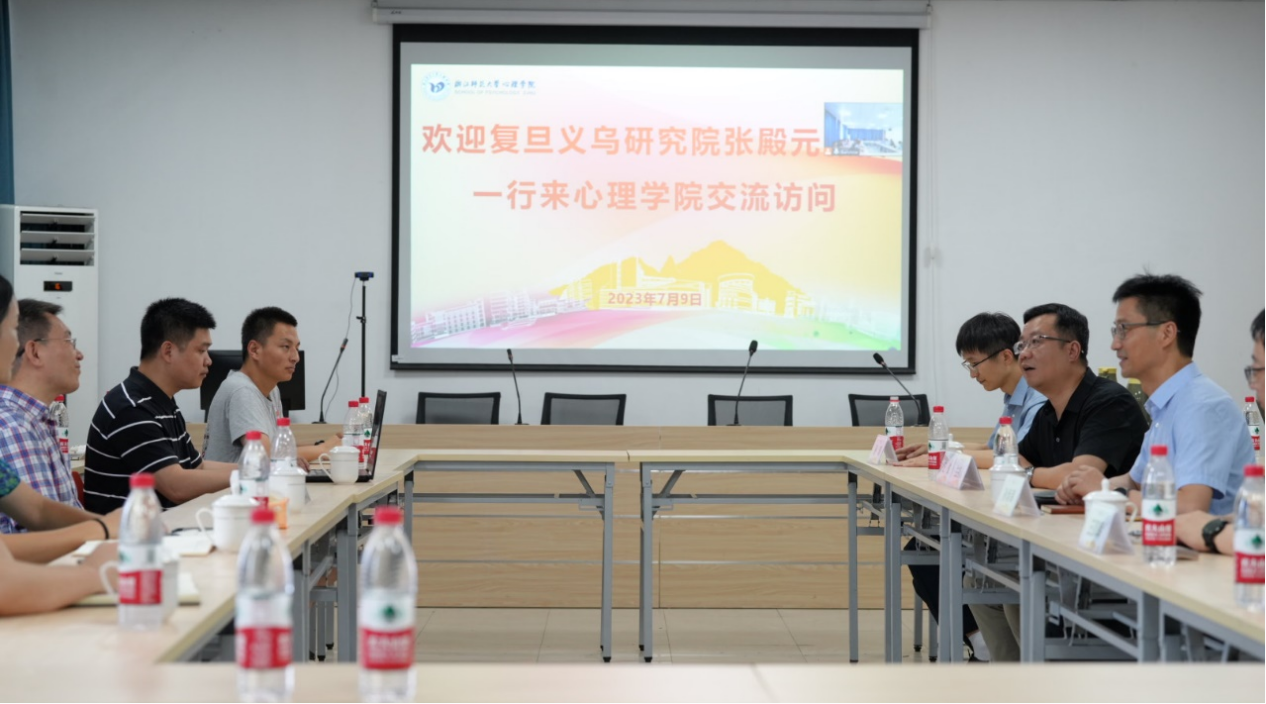 7月9日,复旦大学义乌研究院张殿元教授携全媒体社会化智能传播产学研实验室团队来永利23411集团和浙江省儿童青少年心理健康与危机干预智能实验室(简称“实验室”)交流访问。学院院长、实验室首席专家孙炳海教授,副院长、实验室主任汪俊教授,学术伦理委员会主任李庆功教授,心理测量学专家康春花副教授,实验室建设主任孙琪博士,天音科技王绍辉董事长等出席交流活动。活动由汪俊教授主持。
