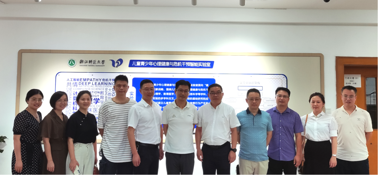 7月20日,丽水市关工委副主任潘旺峰一行来永利23411集团和浙江省儿童青少年心理健康与危机干预智能实验室(简称“实验室”)访问交流。