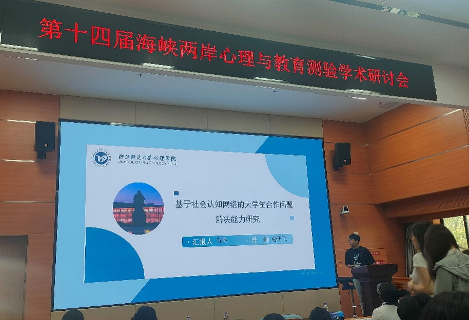 13日在分会场中,郑慧婧、赵振扬、苏胜、王汉秦、韩昳同学分别做了《能够满足多种内容约束和统计约束的新MPI组卷方法》、《联合作答反应和反应时的变点分析法》、《基于社会认知网络的大学生合作问题解决能力研究》、《事后引入多连接组的多群体无错题测验等值》、《基于卷入程度和协同性双视角的父母教育卷入类型分析》的报告,内容涉及智能测评下的统计与测量新方法新技术探讨,及家庭教育研究中的测评工具新开发,相关研究引起了与会者的热烈关注。