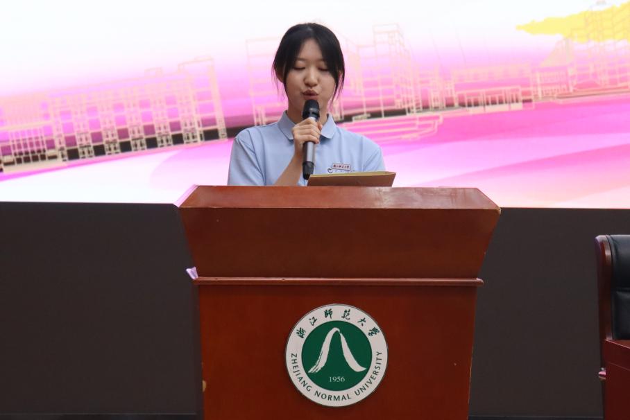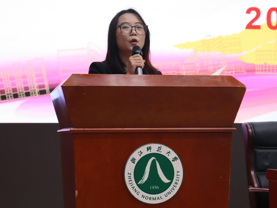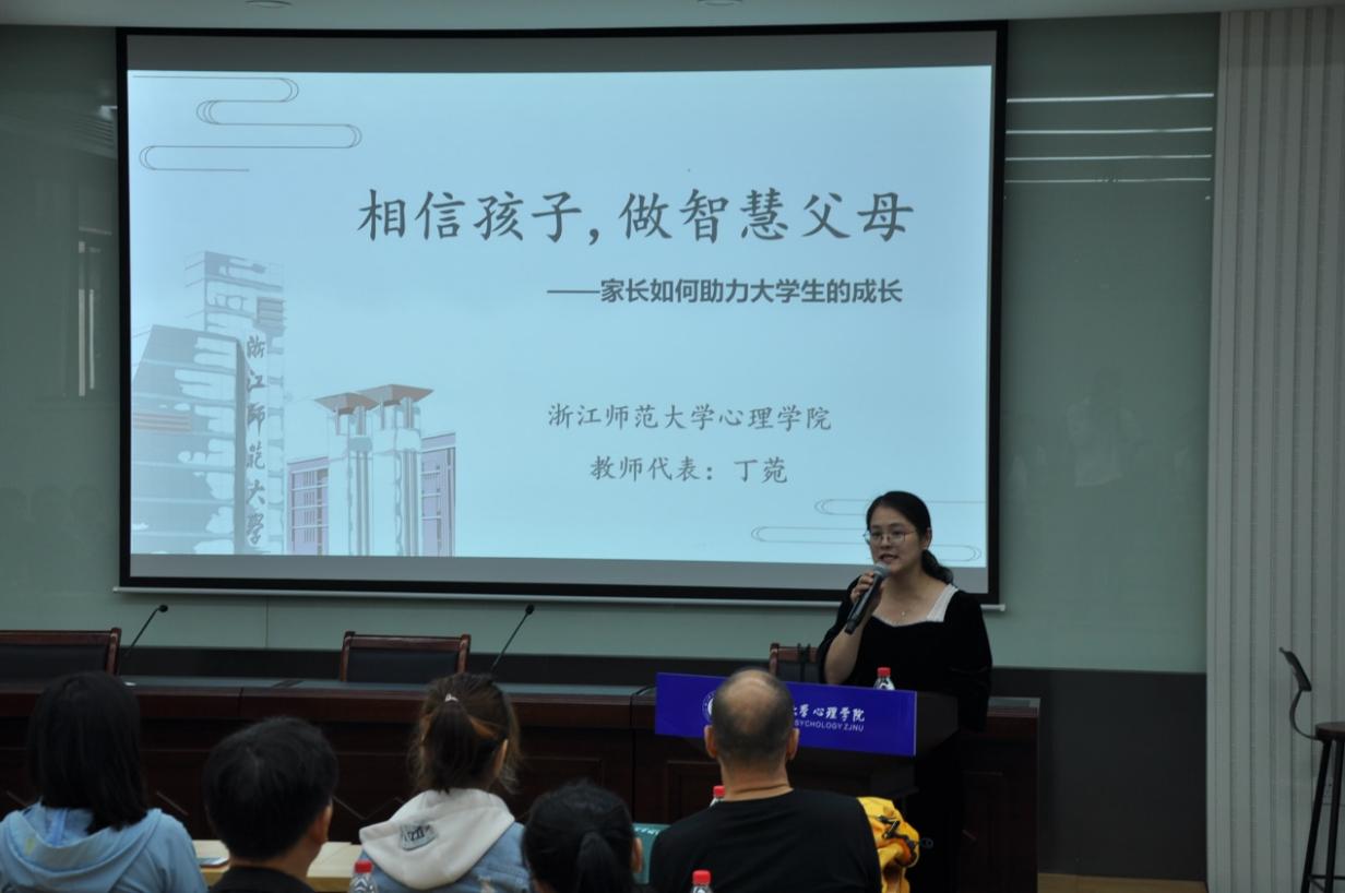 随后,青年教师代表丁菀向家长展示了浙师学子的校园生活和生涯发展,并指出家长应当相信孩子,支持大学生的自我成长。