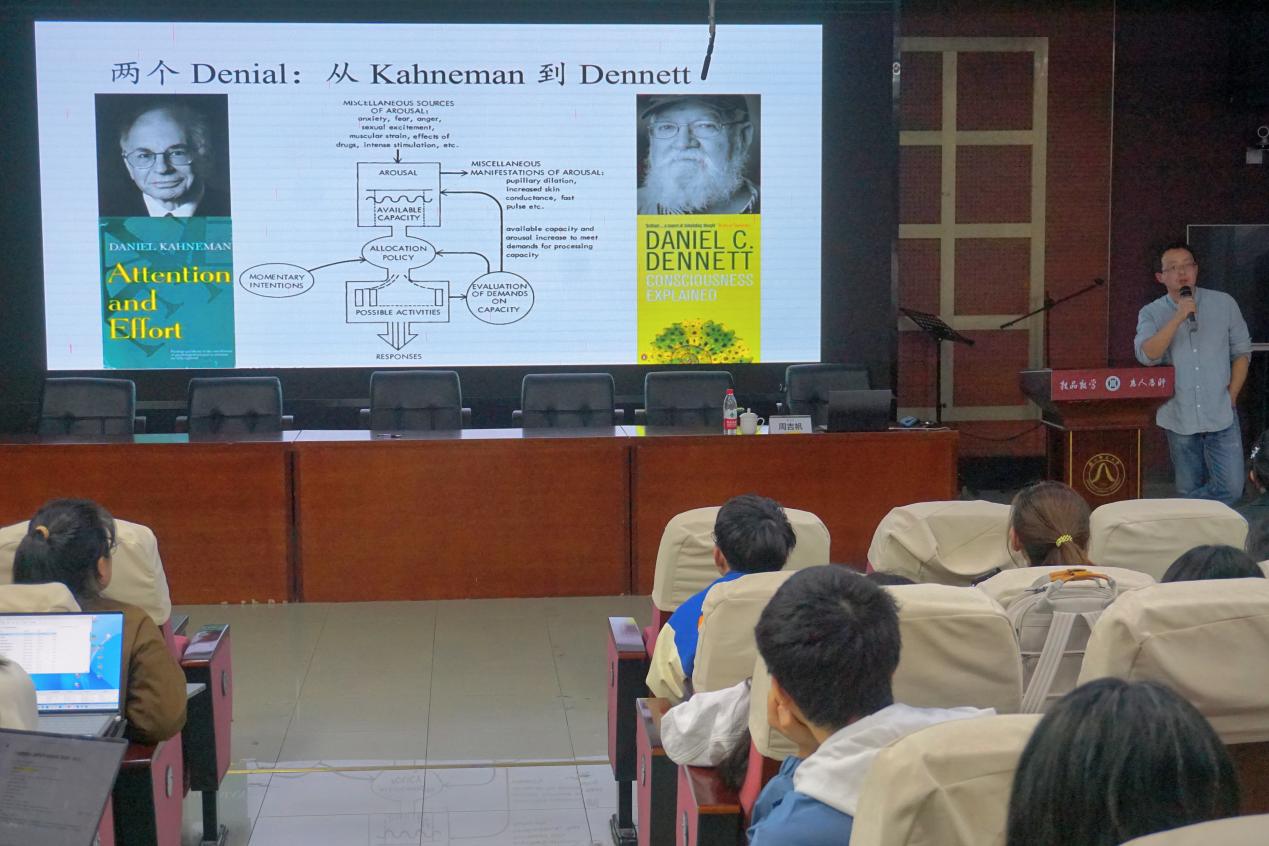 第三部分,周吉帆介绍了注意领域的计算建模,老师从自身对注意的认识展开,对注意的理论与研究发展进行详细的说明,并按照建立理论——提出假设——展开实验——修正理论的思路介绍自己的研究。在老师对实际研究的讲解中,同学们对于计算建模在心理学研究中应用的认识得到深化。