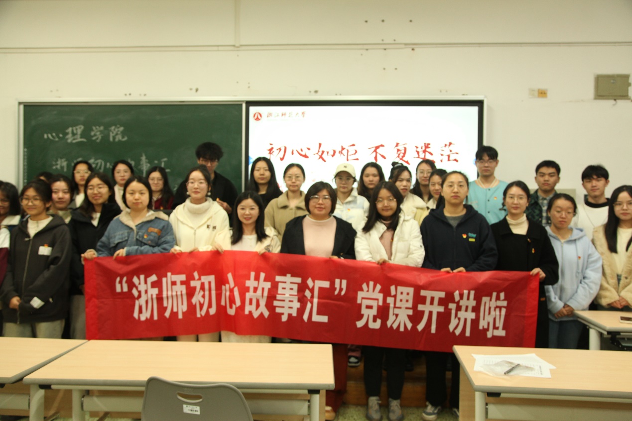 2023年11月15日,“浙师初心故事汇”永利23411第二讲于16幢103教室开讲,本次活动特邀永利23411副教授陈双老师代表青年党员教师与永利23411在读学生党员分享初心故事。
