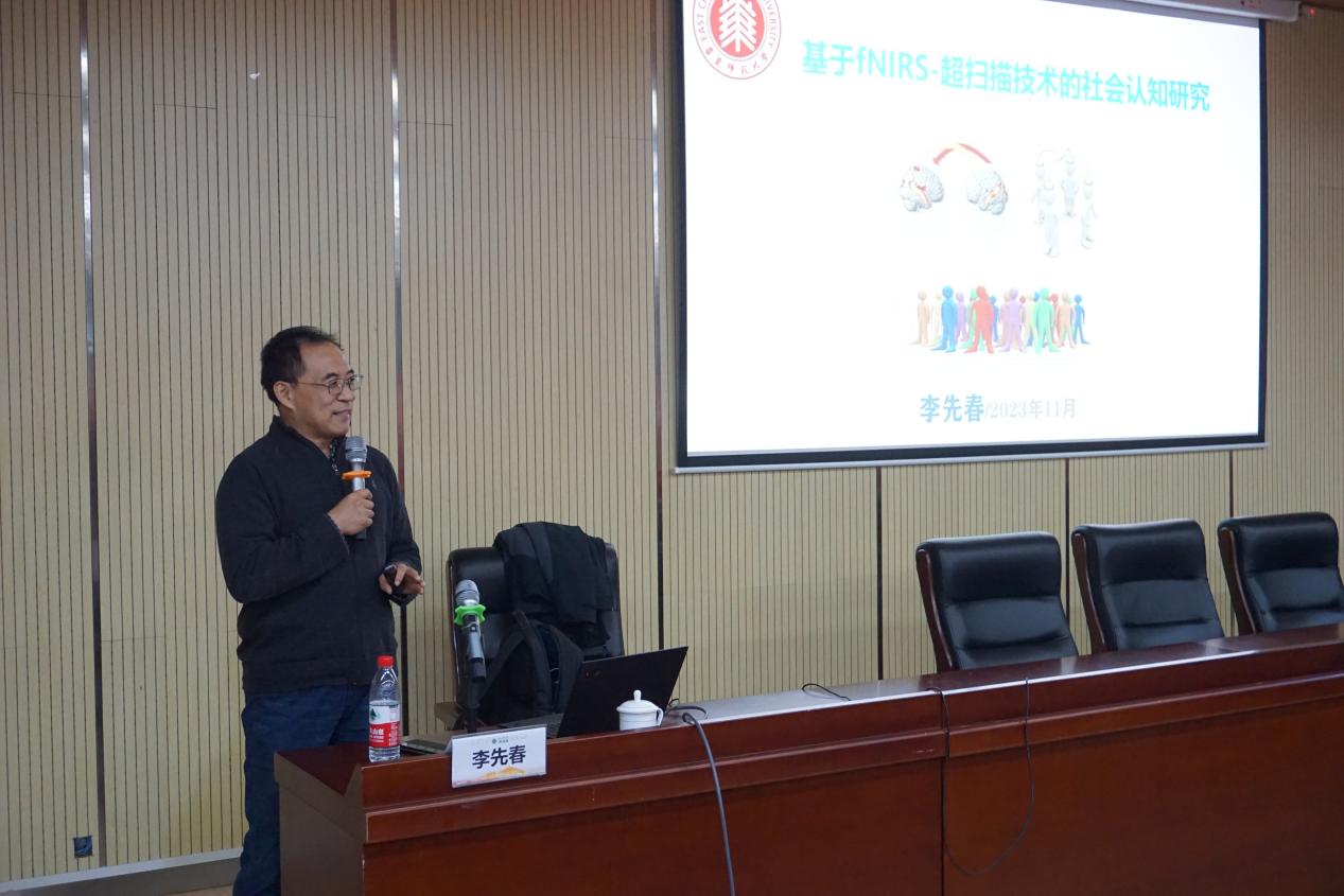 1115日晚,“尖峰卓越心理讲堂第七十”邀请到了华东师范大学心理与认知科学学院教授、博士生导师李先春老师,为我院师生作了题为《基于fNIRS-超扫描技术的社会认知研究》的精彩讲座。本次讲座由浙江师范大学应用心理学专硕学位点负责人詹沛达老师主持,我院本科生、研究生和教师100余人到场聆听了此次讲座。