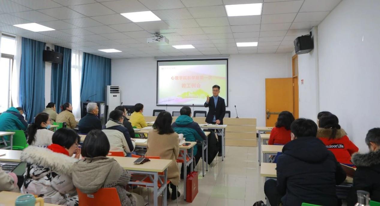 孙炳海传达了学校年度工作会议精神,围绕“学习心理学能为社会做什么贡献”问题,他提出要处理好五个方面的关系:一是处理好自己业务与政策学习的关系,二是处理好重点工作与常规工作的关系,三是处理好教学科研与社会服务的关系,四是处理好兴趣与责任的关系,五是处理好底线与高线的关系。
