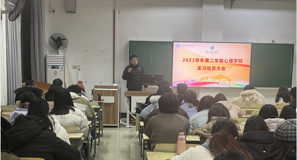 为更好推动心理学院学生实习工作合理有序开展,加强学院实习管理工作,引导学生做好实习前期各项准备工作,2月29日晚上7点,永利23411举行了2020级本科生、22级专业硕士实习动员大会。学院副院长贾磊、应用心理学本科专业主任陈海德,专硕学位点负责人詹沛达,教务办主任施丽君、实践指导教师代表房娟和陈双出席会议。