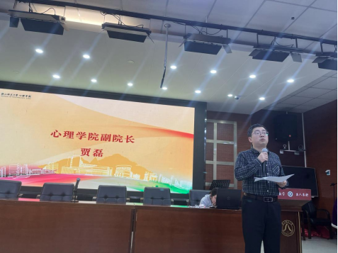 最后,学院副院长贾磊从成长与挑战、能力与实践、成果与收获的主题出发,介绍了双创训练项目的后续提升路径,强调了创新创业训练在大学阶段成长的重要平台作用,勉励同学们和老师交流沟通,积极参与双创训练,理论与实践相结合,争做心理学创新性复合人才。