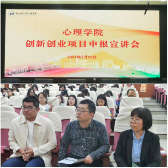 本次创新创业宣讲会正值我校2024年度国家级、省级和校级大学生创新创业训练计划项目申报期间(https://jwc.zjnu.edu.cn/2024/0325/c4331a462459/page.psp),不仅激发了心理学子对创新创业和科研探索的热情,也解答了同学们亟待解决的创新创业项目申报疑问。