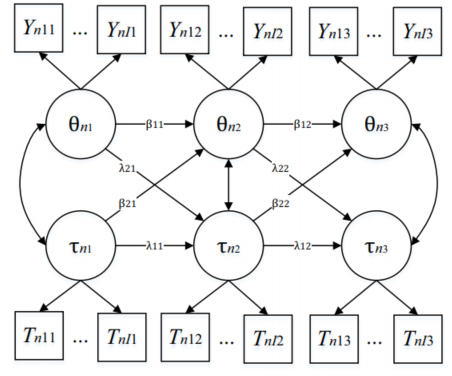 图3 基于自回归交叉滞后的纵向联合建模法示意图