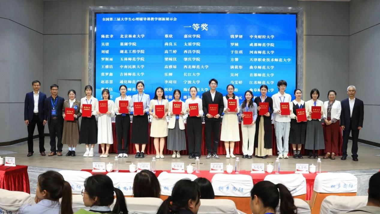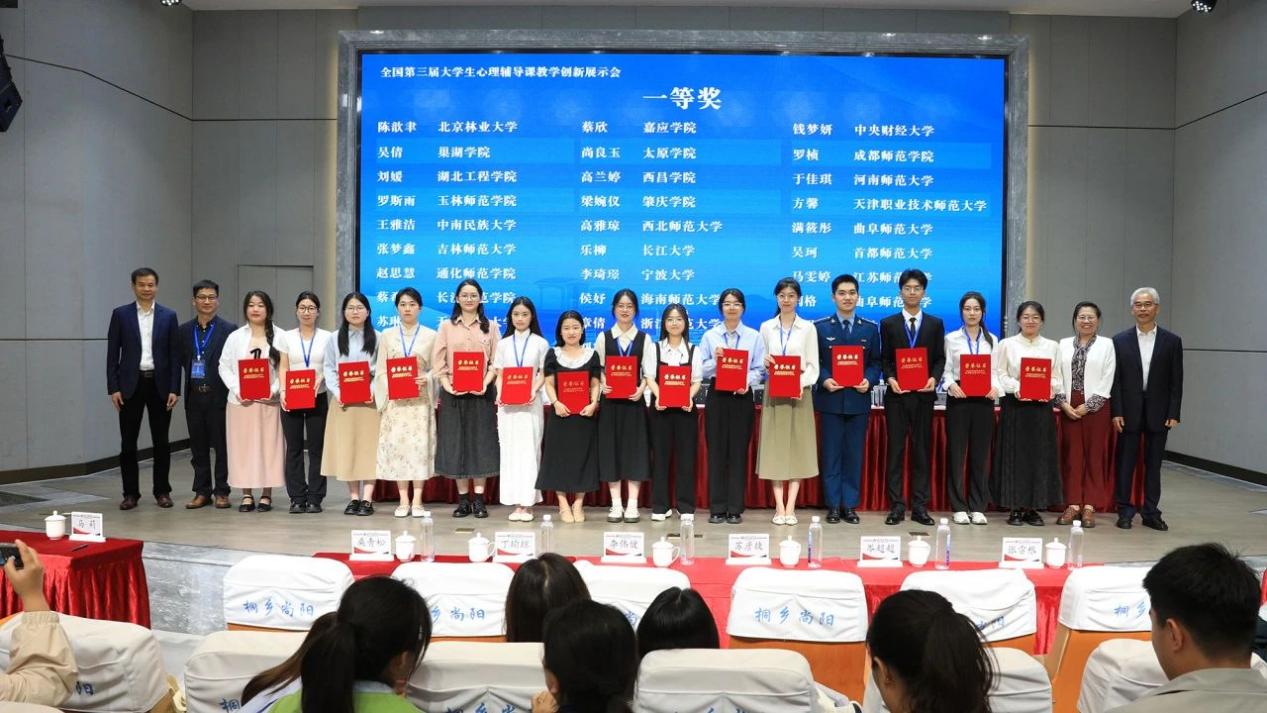 26日下午,中国第三届大学生心理辅导课教学创新展示会闭幕式暨颁奖典礼在上海尚阳外国语学校桐乡实验学校报告厅举行。