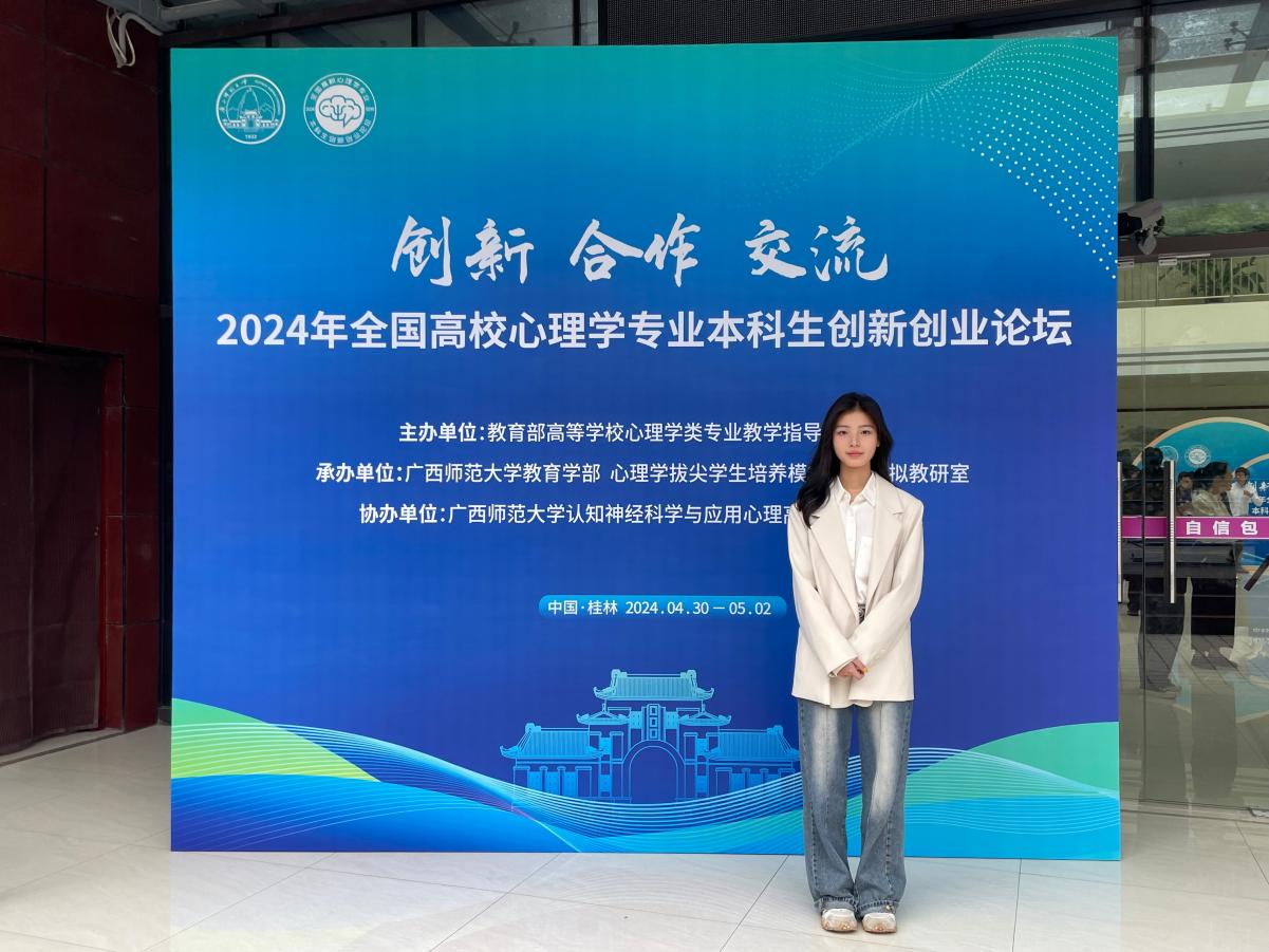 4月30日至5月2日,由教育部高等学校心理学类专业教学指导委员会主办,广西师范大学教育学部、心理学拔尖学生培养模式改革虚拟实验室承办,广西师范大学认知神经科学与应用心理高校重点实验室协办的2024年全国高校心理学专业本科生创新创业论坛在广西师范大学落下帷幕,我院应用心理学211班伊冉同学所带领的团队作品《打哈欠会传染?》在心理科普短视频分论坛中斩获全国一等奖!