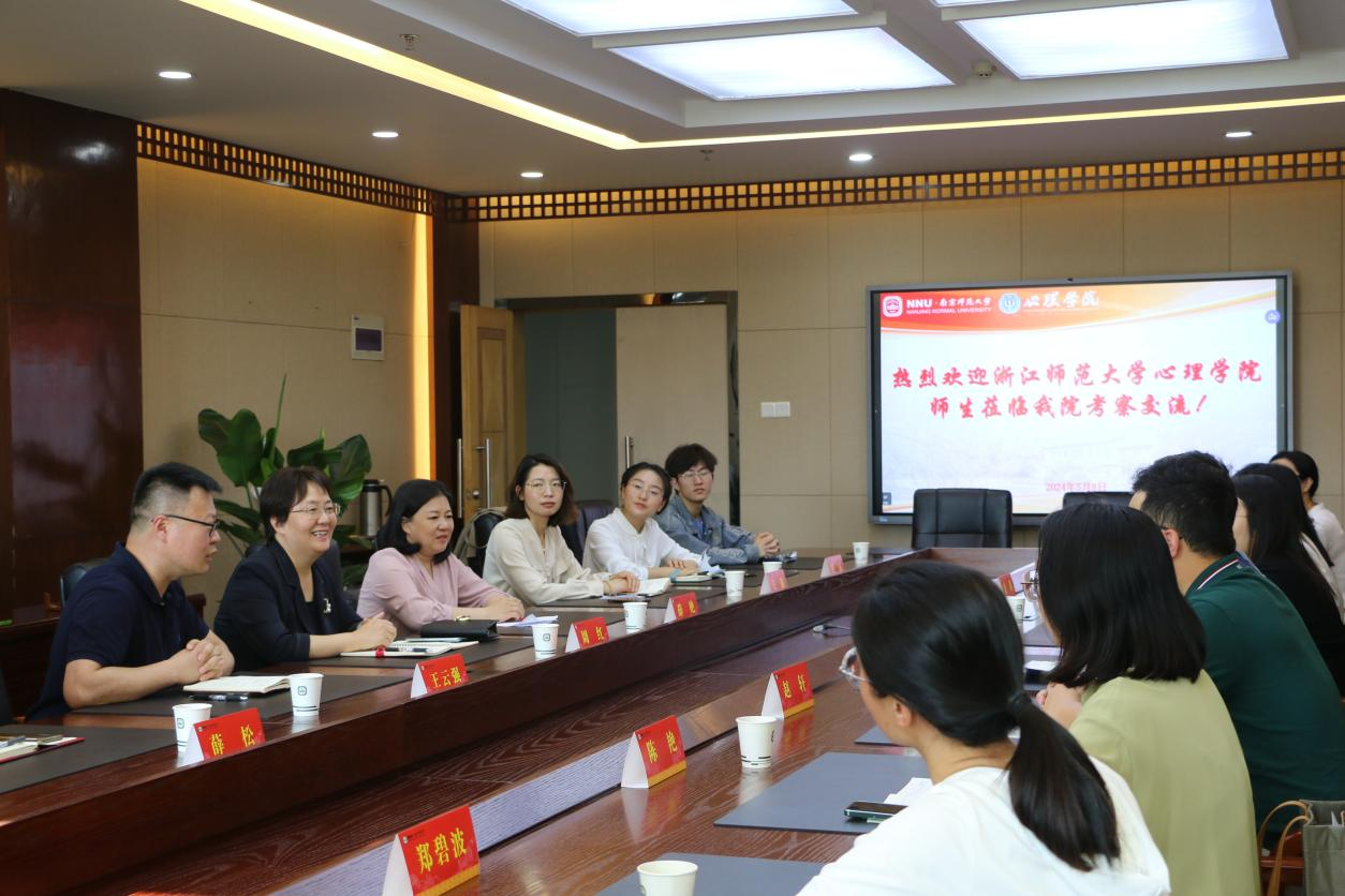 5月8日下午,浙派名师考察团由浙师大永利23411副院长贾磊、社会服务中心赵轩带队来到了南京师范大学永利23411,南师大永利23411党委书记周红、副书记薛艳、副院长王云强等领导接待了考察团,并与名师团展开座谈。会后学员纷纷表示对南京的心理健康教育科研有了更深入的了解。