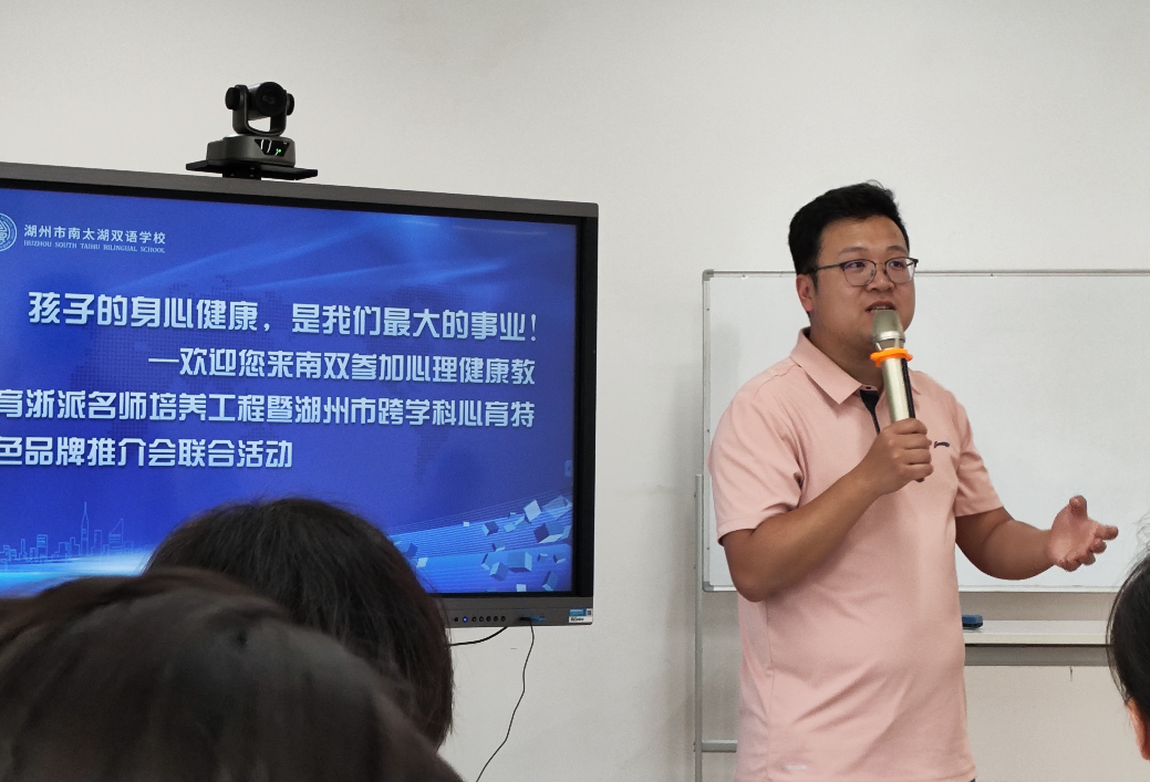 湖州各区县与两所心理健康教育特色学校的代表作交流分享,吴兴区潘扬、南浔区丁樱、德清县车海琪、长兴县陈卫东、安吉县章艺红、浙江信息工程学校陆婷和长兴县古城中学戴玉兰分别作了心理健康教育特色工作汇报。
