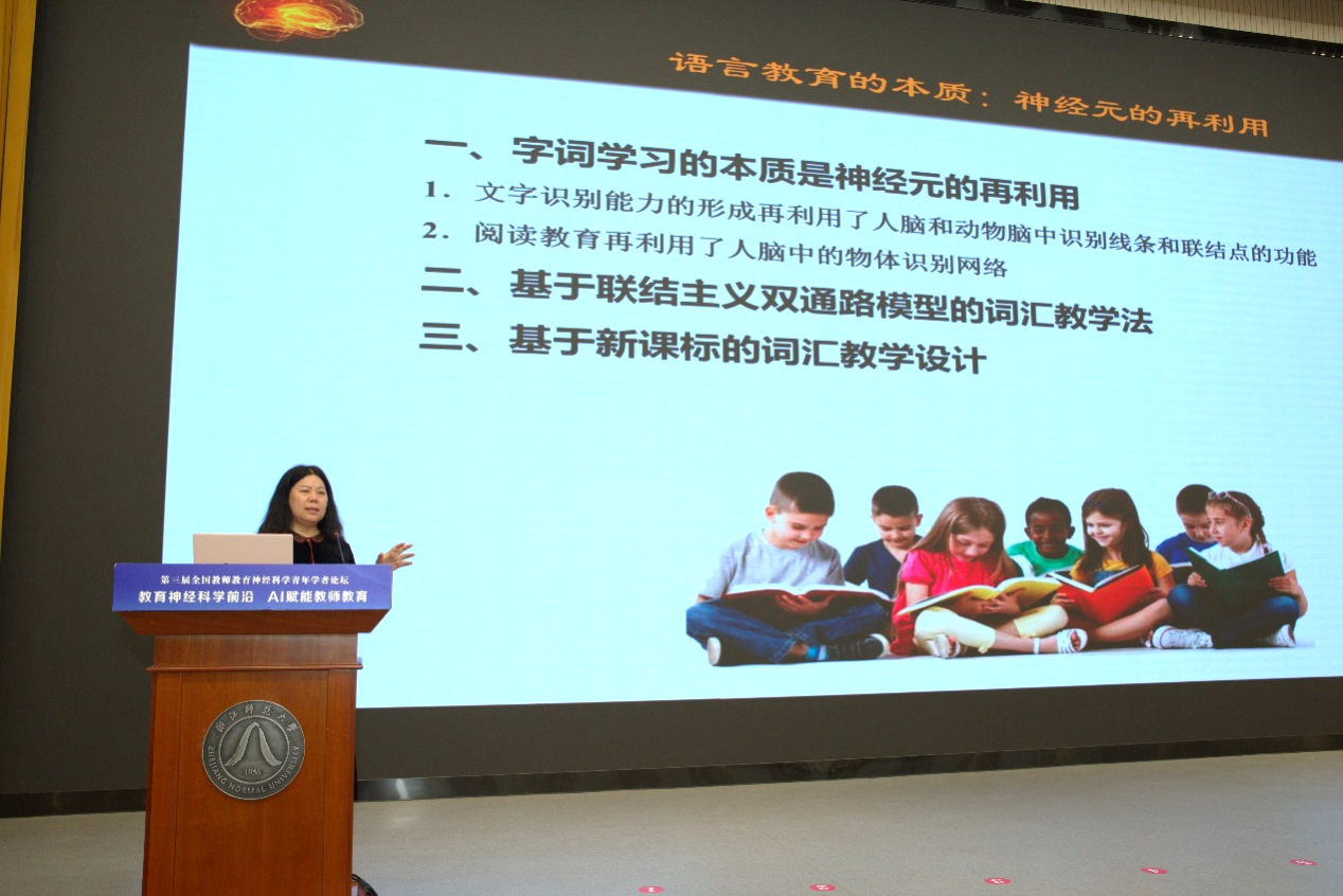 华东师范大学周加仙教授分享了词汇教学法的教育神经科学研究,同时呈现了丰富的基于教育神经科学的教学实践案例。