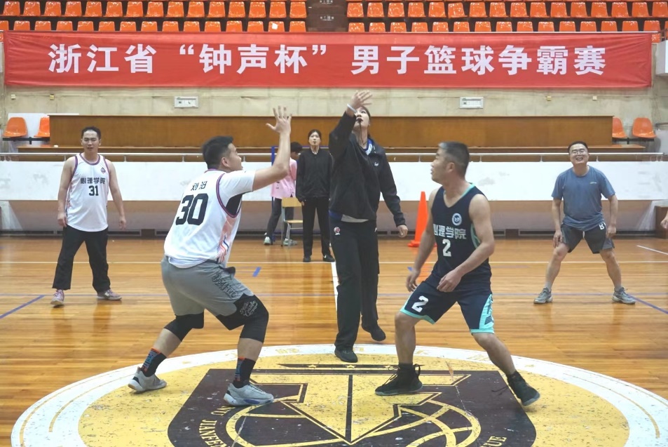 第三节,学生队铆足了劲奋起直追,在篮球场上冲锋、跳跃、传球,教师队身姿矫健,利落投篮,双方上演一场扣人心弦拉锯战。节末,汪俊老师与陈海德老师相继命中两分球,以76比69的比分结束本节比赛。