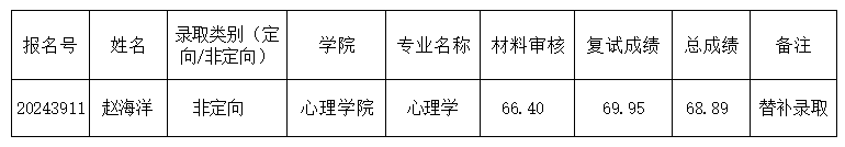 因考生朱锋(准考证号:103454150000073)放弃拟录取资格,现补录考生赵海洋,***号610323199801300034,录取类别为非定向。
