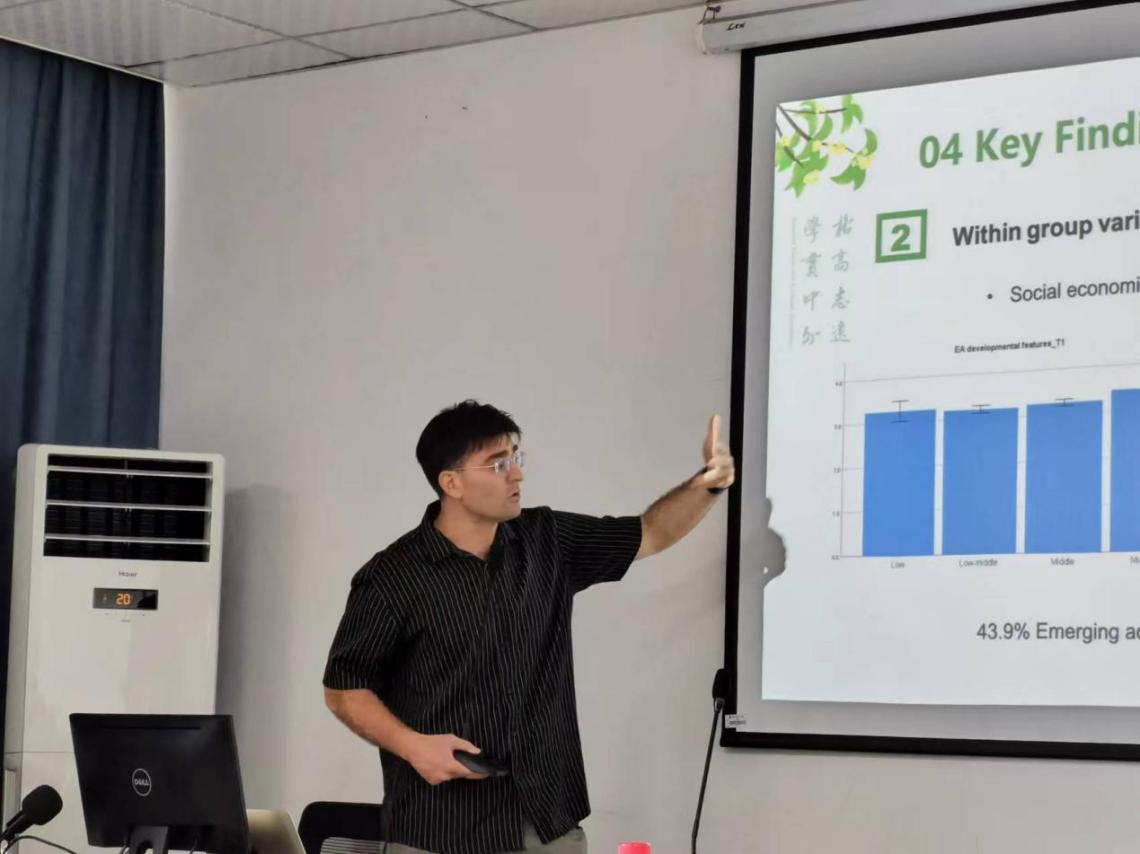 随后开始的“尖峰卓越心理讲堂第八十五讲”,邀请到了温州肯恩大学永利23411副教授Alexander S. English,为我院师生作题为《From College to the Workplace:An In-depth Understanding of the Trajectories in Emerging Adulthood for China’s Youth》的精彩讲座,讲座由永利23411孙茜老师主持。