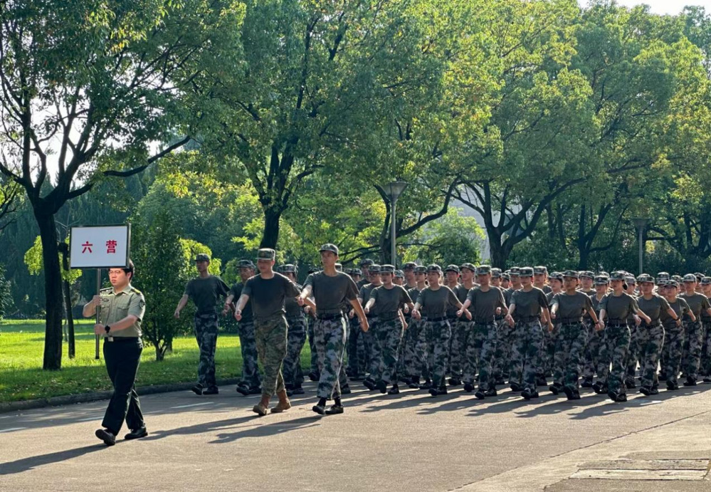 每天早上雷打不动的第一课便是站好军姿,双脚分开约60度,脚跟并拢,双手紧贴裤缝,两肩后张,收腹,目视前方,在几天的接触下,这些动作我们都熟络于心。清晨的风轻轻撩动着我们的头发,但阳光却依然**,虽然可能只是短短十分钟,但好像有一个世纪这么漫长。