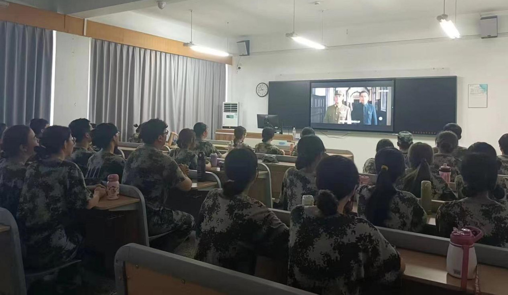 在训练之余,同学们积极参与关于应急救护知识普及和热射病防治培训的讲座,观看《建党伟业》《建军大业》《建国大业》等爱国教育电影。