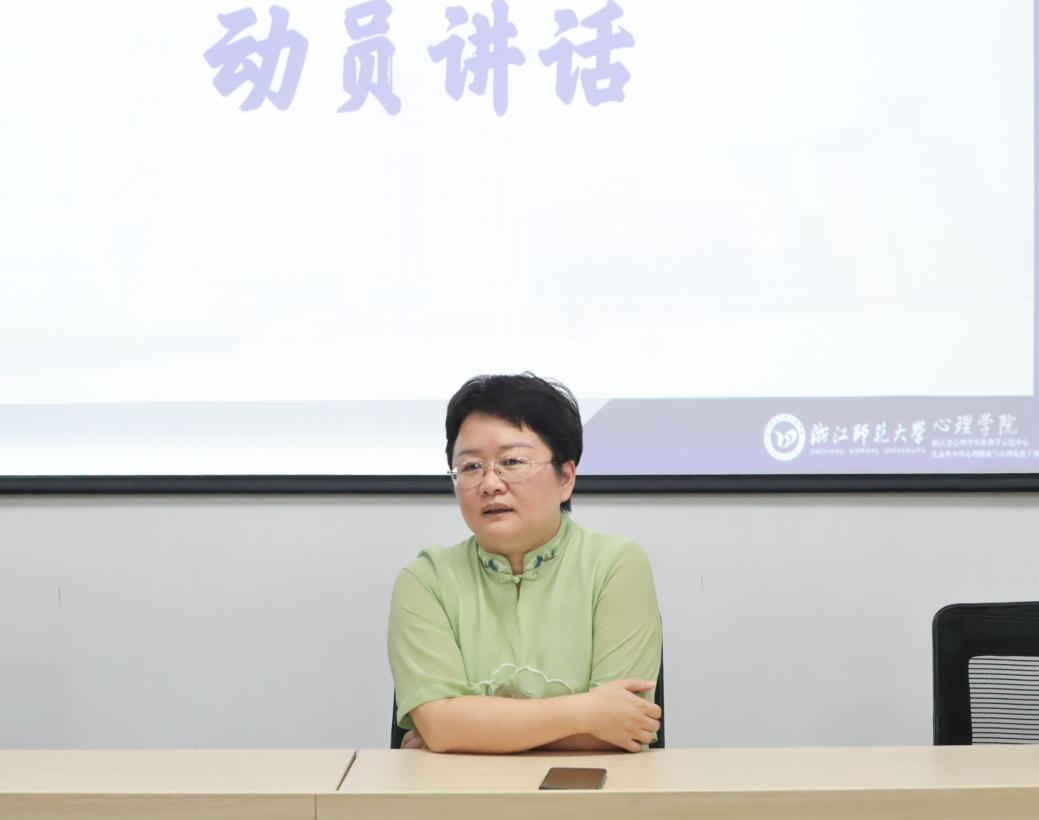 仪式伊始,学院党委书记马莉老师作动员讲话。马莉老师首先对实践队成员提出四点要求:一、要勇于吃苦,接受考验,以崇高的奉献精神投入到社会实践中去;二、要善于学习,增长才干,在实践中提高发现问题和解决问题的能力;三、要严守纪律,注意安全;四、要注重团队合作,善于发现身边人的闪光点,统筹规划。此外,马莉老师强调希望实践队成员能够将所学运用于实践,通过本次社会实践活动推动心理学赋能乡村,挖掘面对不同群体的心理教育能力,发挥专业特长,服务社会。“希望我们实践队开开心心地去,收获满满地回。”马莉老师在讲话最后提出对实践队的殷殷期冀。