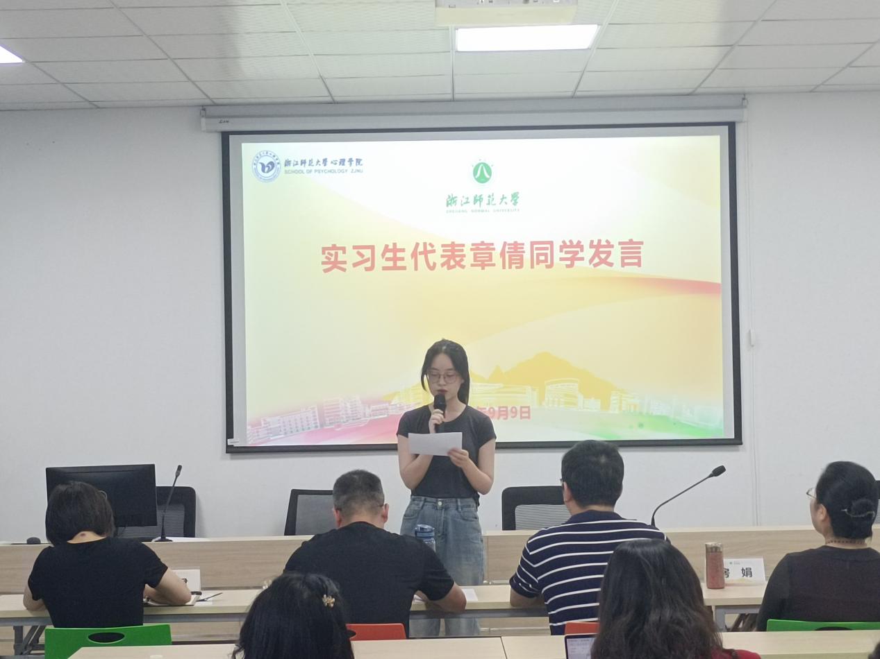 实习生代表章倩同学感谢了师大和实习校提供珍贵的实践机会,同时代表实习生表态将在实习期间端正态度、虚心求教、踏实向学。