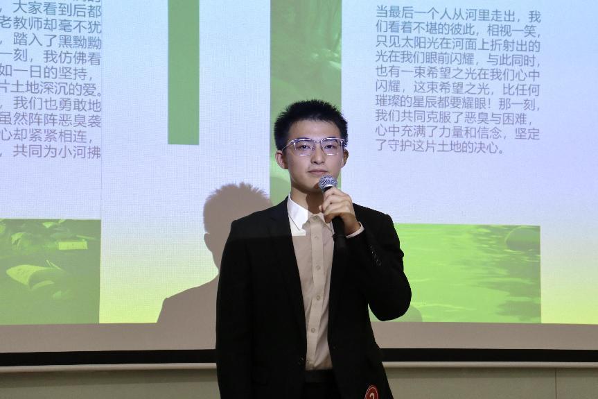 “我紧紧握住他的双手,心中想坚守家乡的心愈发坚定。”在激昂的演讲声中,2号选手卫鸿闻将自己做绿色守护者的经历娓娓道来。