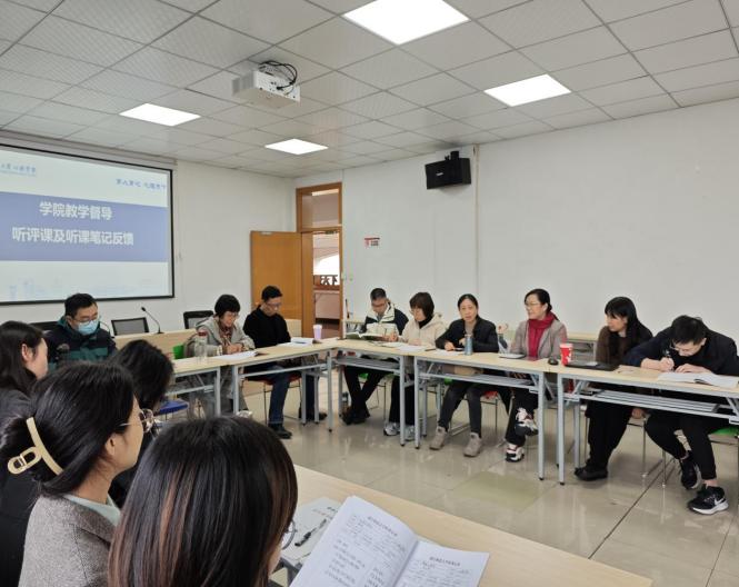 教学督导李锋盈、王立君两位老师深入分析了老师们在教学过程中教学方法运用、教学内容安排、课堂互动效果以及教学进度把控等情况,肯定了青年教师对教学互动的重视和改善。施丽君老师就本学期同学们本科课程教学中提出问题向老师们进行了反馈;朱婷老师反馈了本学期研究生课堂教学中反映的问题。副院长汪俊、贾磊与老师们积极聆听和探讨教学督导和学生反馈的问题,讨论和布置了学院下学期重点教学工作。老师们对教学工作进行了深入交流和互相探讨,后续将积极反思切实完善,持续提升课堂教学能力。