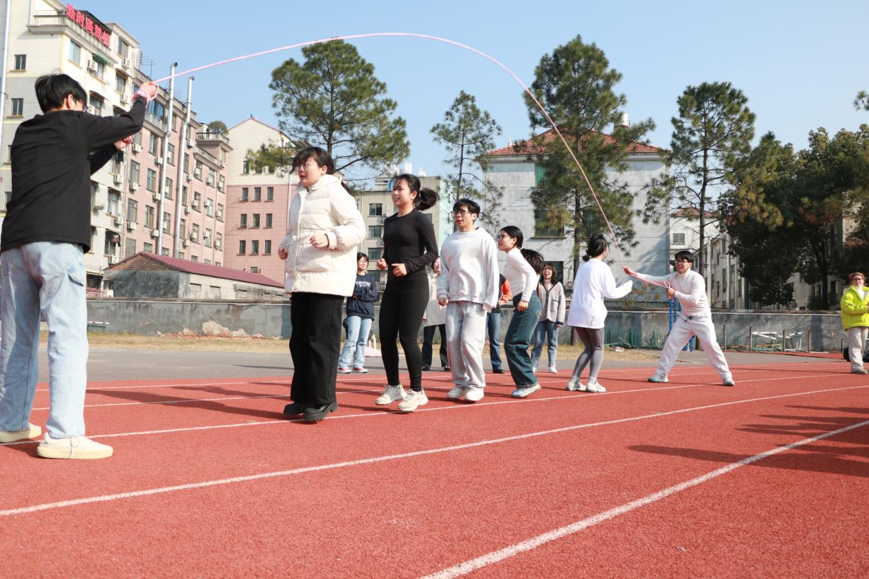 在冬日暖阳的照耀下,师生们齐聚操场,投入到热烈的跳大绳活动中。尽管寒风依旧凛冽,但现场却洋溢着炽热的活力与欢笑。汗水与笑容交织在一起,每一次成功的跳跃都伴随着阵阵欢呼声。这次活动不仅增强了我们的团队精神,还让大家在这个冬天感受到了别样的温暖与快乐!