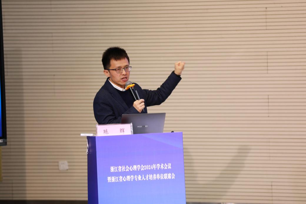 陈辉做《社会交互对人类信息加工的影响机制及应用研究》的报告,从社会认知研究背景、社会交互信息的无意识加工、人-人和人-机交互对信息加工的影响以及社会交互的临床认知研究四个方面进行报告分享。