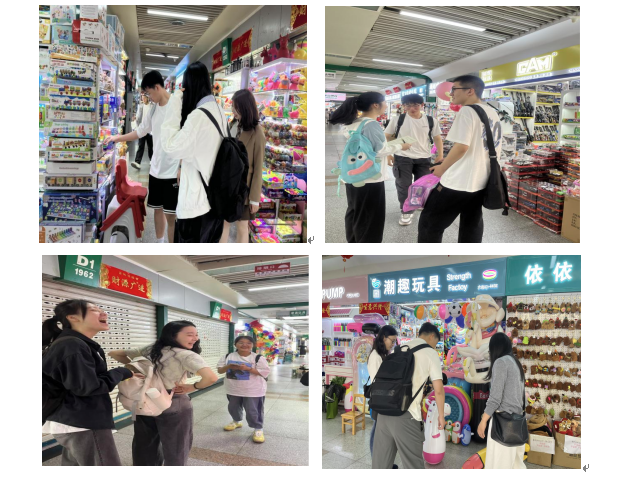 到达商贸城的玩具区,同学们迅速化身为“儿童发展与玩具分析师”,在庞大的玩具区、琳琅满目的商品中展开激烈讨论:“4个月的婴儿主要聚焦‘感知运动阶段’需求,可以选摇铃、软胶手抓球等,结合触感与材质安全”;“8个月婴儿的‘客体永久性’已经发展,可挑选安全的机关玩具或缓慢移动的小车”; “2岁幼儿结合‘符号思维萌芽’,选择拼插积木和简单的角色扮演道具”;“5岁学龄前组匹配‘逻辑思维发展’,试试STEM科学实验套装。”