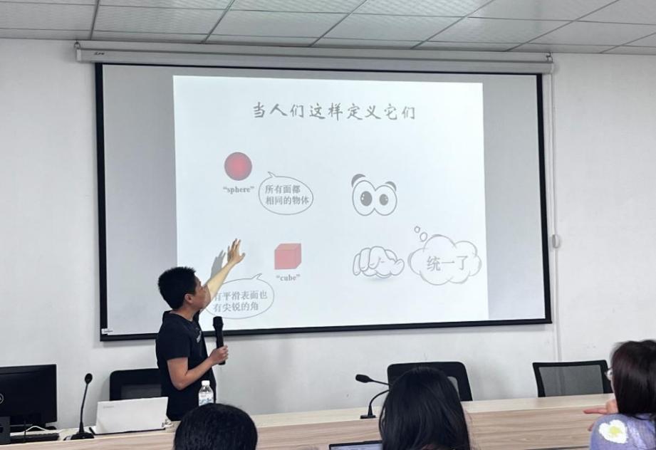在讲座的最后,胡清芬教授分享了其团队在几何概念方面的研究内容。几何概念作为人类知识体系中的重要组成部分,其起源和发展一直备受关注。胡教授简要介绍了自己在该领域的研究思路、方法以及取得的阶段性成果,为师生们打开了一扇全新的学术之窗。
