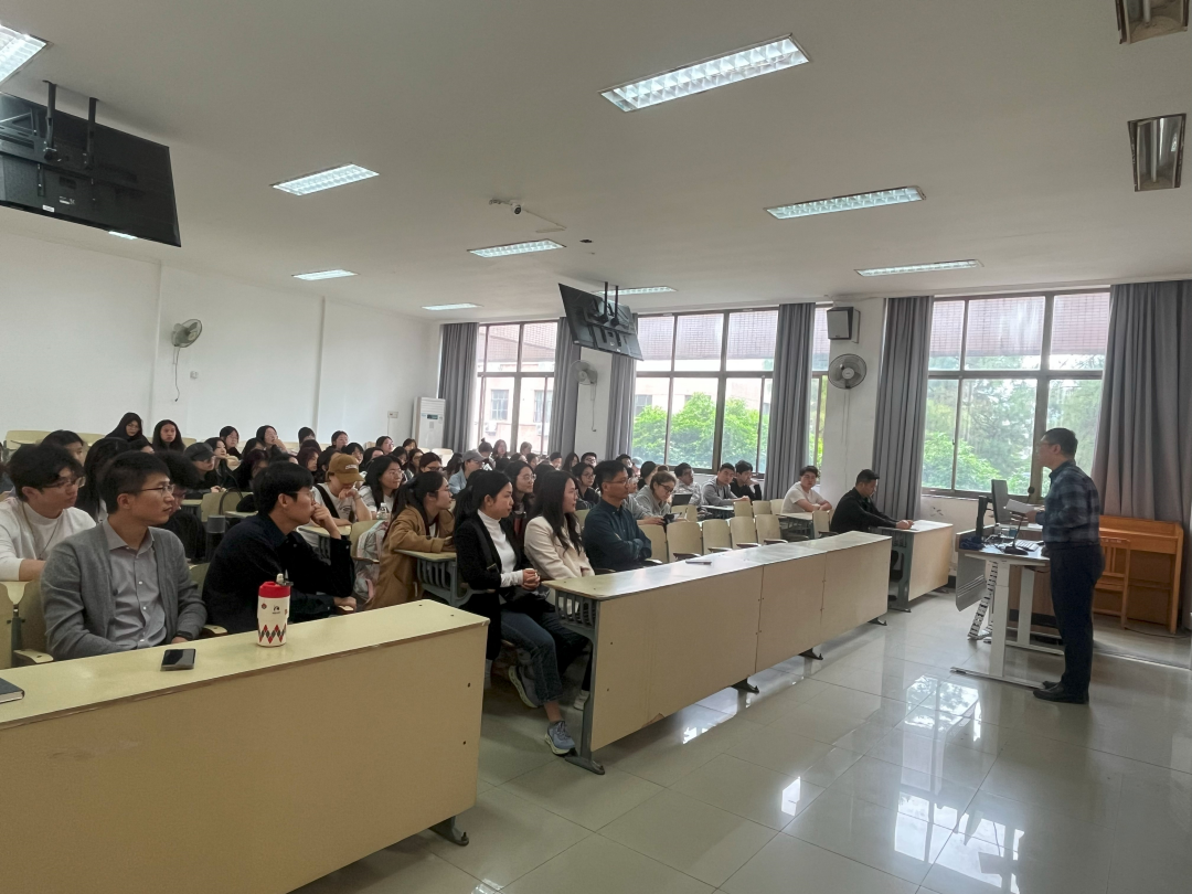 副院长汪俊则重点介绍了学院硕士点的建设情况和特色,包括学科方向、导师团队及科研平台等,帮助同学们深入了解学院的研究生培养优势。并强调学院在研究生招生中尤其看重学生的专业实践经历和问题解决能力。副院长贾磊最后从考研择校、复习策略、时间管理等方面提出具体建议,提醒同学们提前做好大四期间的规划,动态调整、合理制定备考计划。