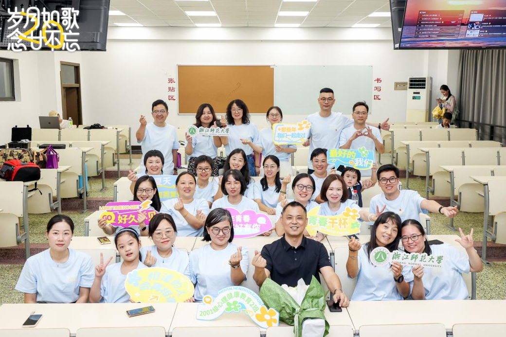 二十载春秋如诗,同窗情谊依旧。8月16日至17日,浙江师范大学2001级心理健康教育1班和2班的校友们,跨越二十年光阴,从天南海北重返母校怀抱,共同开启了一场温馨而热烈的毕业二十周年返校之旅。班主任康春花、钱旭升应邀参加。