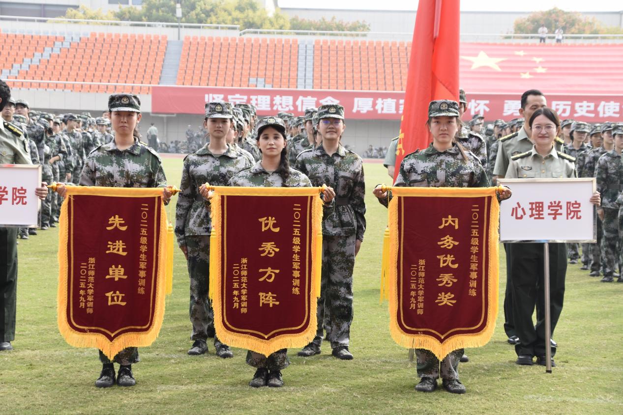 930日上午,浙江师范大学2025级新生军训汇演在东田径场顺利举行。在本次汇演中,永利23411一旅四营凭借出色的表现,荣获“先进单位”“优秀方阵”及“内务优秀奖”三大奖项,这是我院学子继2023级、2024级军训后连续第三年获得军训荣誉大满贯,充分展现了心理学子的风采与实力。