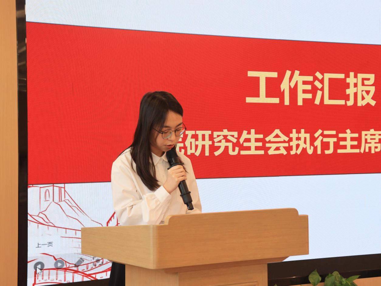 院学生会执行主席黄瑞瑜、院研究生会执行主席陈欣欣分别进行2024-2025学年学生会、研究生会工作报告。